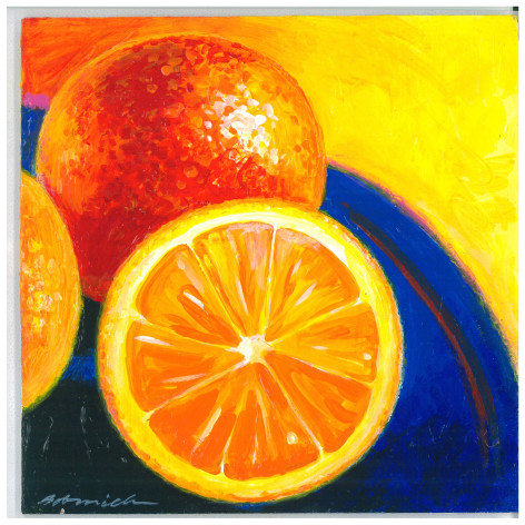 I have loved oranges all my life. When I was a child, on our family farm, we had two navel orange trees in our backyard... they were the best mouth watering, succulent, sweet oranges. On Christmas day my mother put oranges in my stocking! That's the one time oranges disappointed me... I wanted a Lionel train set... the oranges tasted better when I found the train set under the tree! And I love the color orange. It creates excitement, it surrounds a crime scene, it is worn by people who protect us during times of crises and traffic cones urge us to drive carefully.
