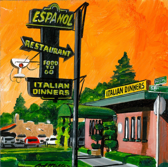 A collection of mostly local bars, eateries, neighborhood haunts and a few 'more respectable' places. They all have a unique patina, a not-so-slick burnish that is more endearing than cookie cutter, sanitized national franchises. Some have neon signs bigger and more spectacular than the establishments they advertise. My first car, a 1936 Ford coupe, my mother's Cadillac, neighborhood haunts... some now gone.